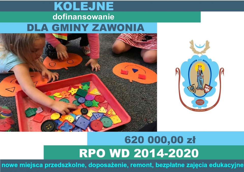 Z nowego projektu dzieci z przedszkola i oddziałów przedszkolnych w Czeszowie i Zawoni będą miały dodatkowe bezpłatne zajęcia edukacyjne, a nauczyciele – szkolenia, dzięki pozyskanej przez nas kwocie 620 797,00 zł ze środków Europejskiego Funduszu Społecznego w ramach RPO WD 2014-2020, działanie 10.1 „Zapewnienie równego dostępu do wysokiej jakości edukacji przedszkolnej.”