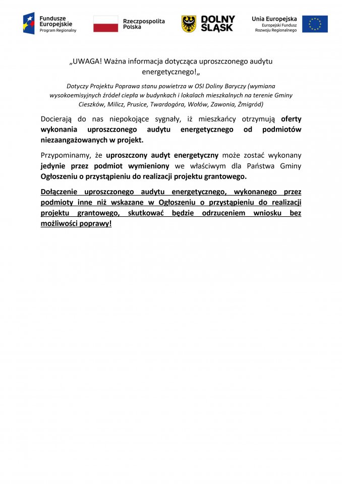 Wyłonieni wykonawcy uproszczonych audytów energetycznych - link do dokumentu