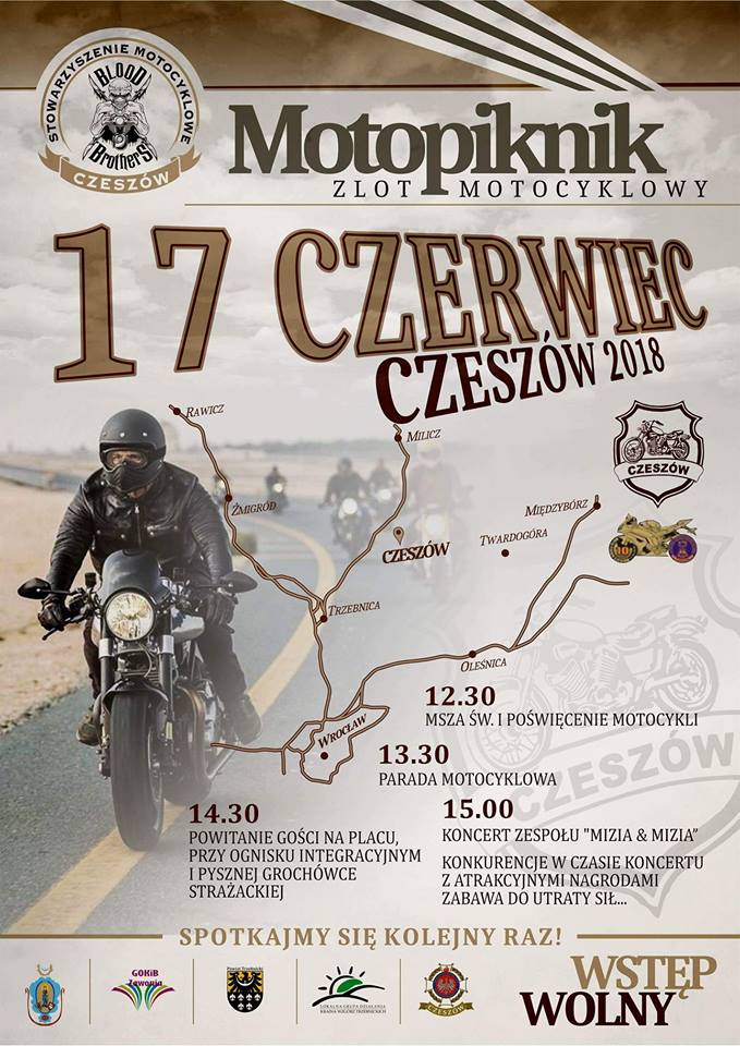 Nie zabraknie stałych elementów takich jak; msza święta wraz z poświęceniem motocykli, w naszym urokliwym czeszowskim kościółku, koncertów porywających kapel, widowiskowych konkursów, czy smacznej grochówki prosto z kuchni polowej.W tym roku nasi strażacy z OSP Czeszów przeprowadzą szkolenie z zakresu udzielania pierwszej pomocy, bo ważne jest dla nas także bezpieczeństwo na drodze. Choć jest to zlot motocyklistów,nie zapominamy także o najmłodszych uczestnikach na których czekać będą atrakcje w „kąciku malucha”. Nie straszna nam pogoda ( różnie to bywało) u nas zawsze panuje ciepła, rodzinna atmosfera. Przyjdźcie lub przyjedźcie aby poczuć klimat i magię płynącą z naszych spotkań.
