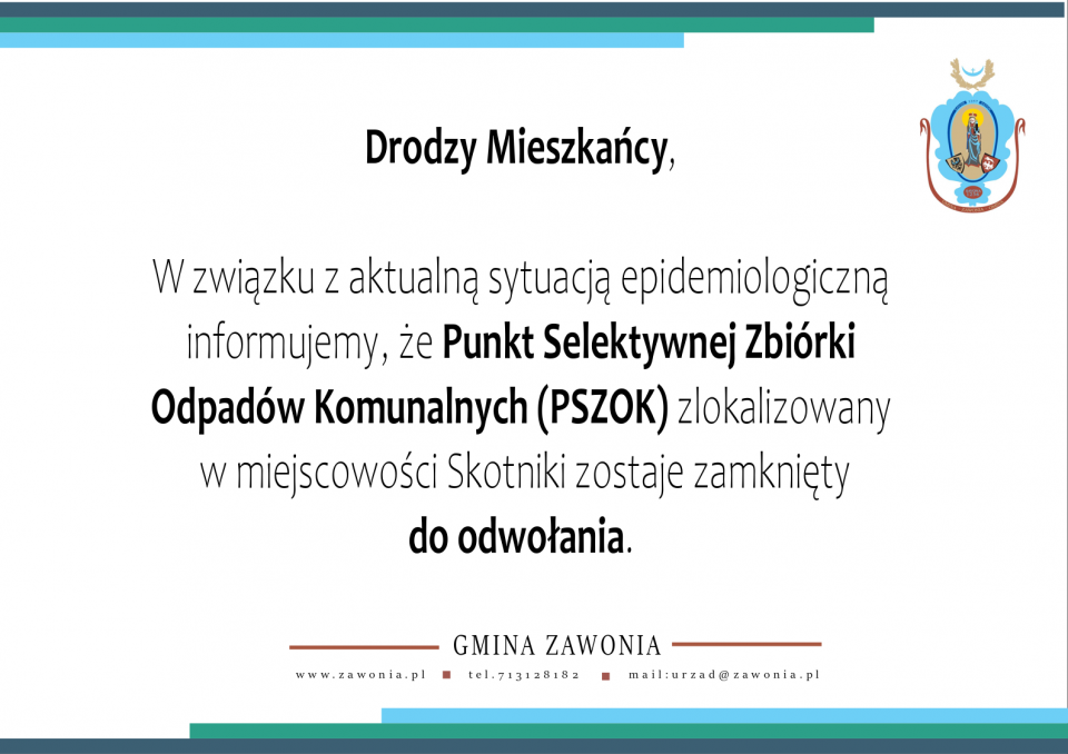 Punkt Selektywnej Zbiórki Odpadów Komunalnych (PSZOK) - zamknięty do odwołania