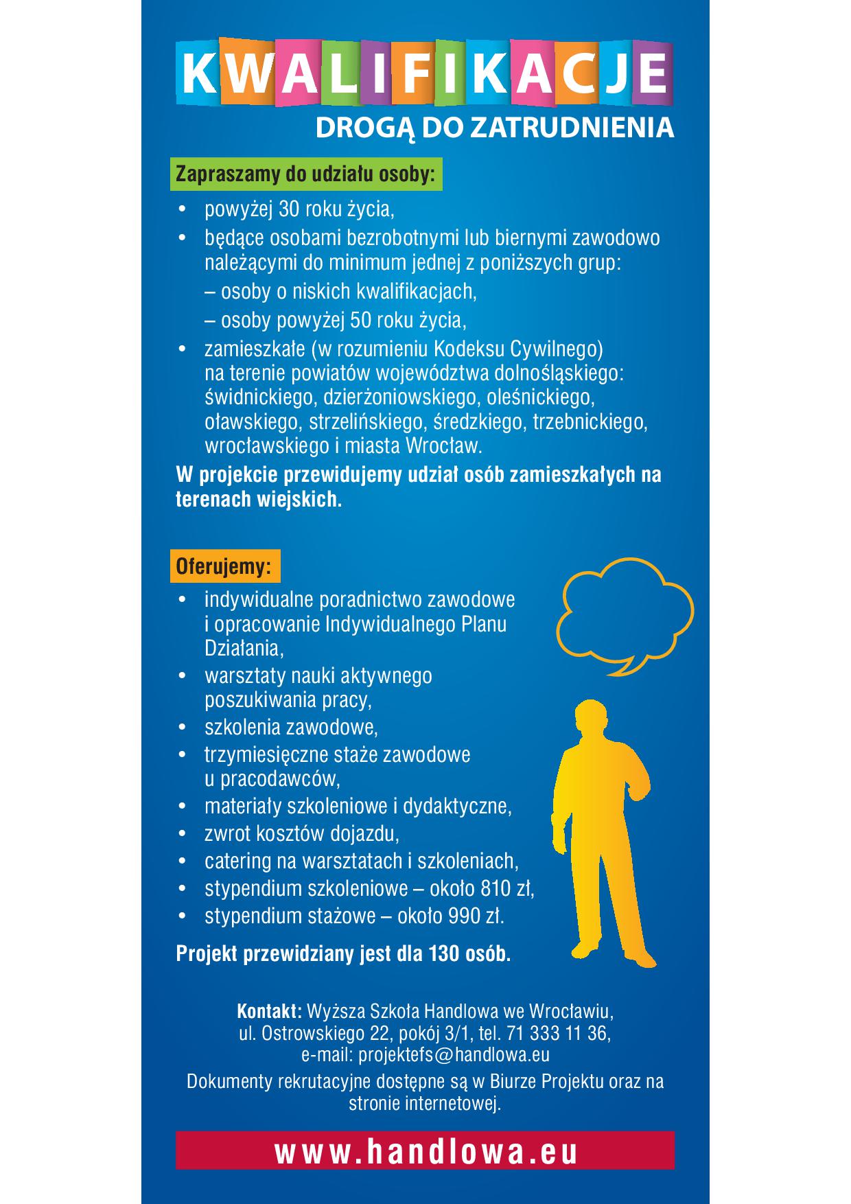 Projekt adresowany jest do osób powyżej 30 r.ż. bezrobotnych lub biernych zawodowo, kobiet przebywających na urlopach wychowawczych, emerytów planujących powrót na rynek pracy.