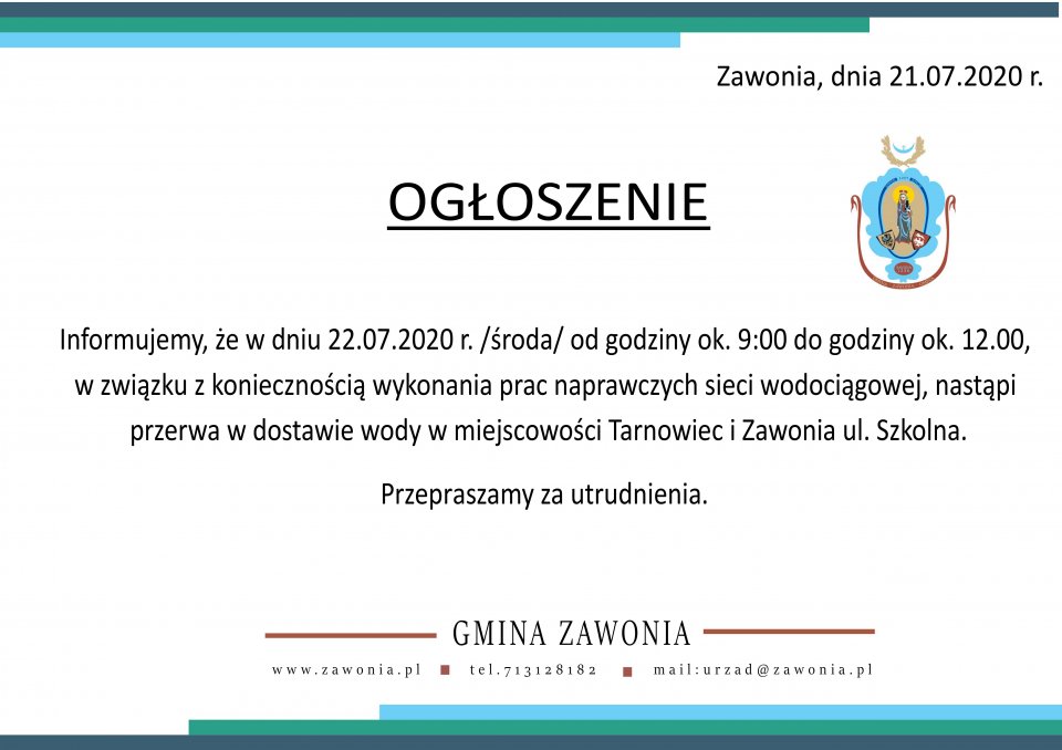 tel.: +48(71) 312 81 82 +48(71) 312 81 93, fax: +48(71) 312 95 59, email:  urzad@zawonia.pl, http://www.zawonia.pl