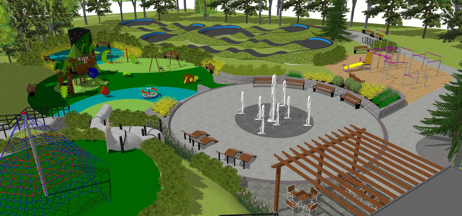 Jeszcze w październiku zostanie ogłoszony przetarg na wyłonienie Wykonawcy do remontu budynku gospodarczego na wypożyczalnie sprzętu sportowego. W roku 2019 wykonany zostanie tor rowerowy - pumptrack, kolejnym etapem będzie wykonanie całego zagospodarowania terenu wraz z infrastrukturą towarzyszącą: placem zabaw z zjazdem wykorzystującym nierówności terenu, ścianką wspinaczkową, nowoczesną fontanną, strefą biesiadną z grillem i siedziskami, siłownią zewnętrzną oraz street workoutem. Projekt ten uzyskał akceptację Rady Młodzieży Gminy Zawonia:)