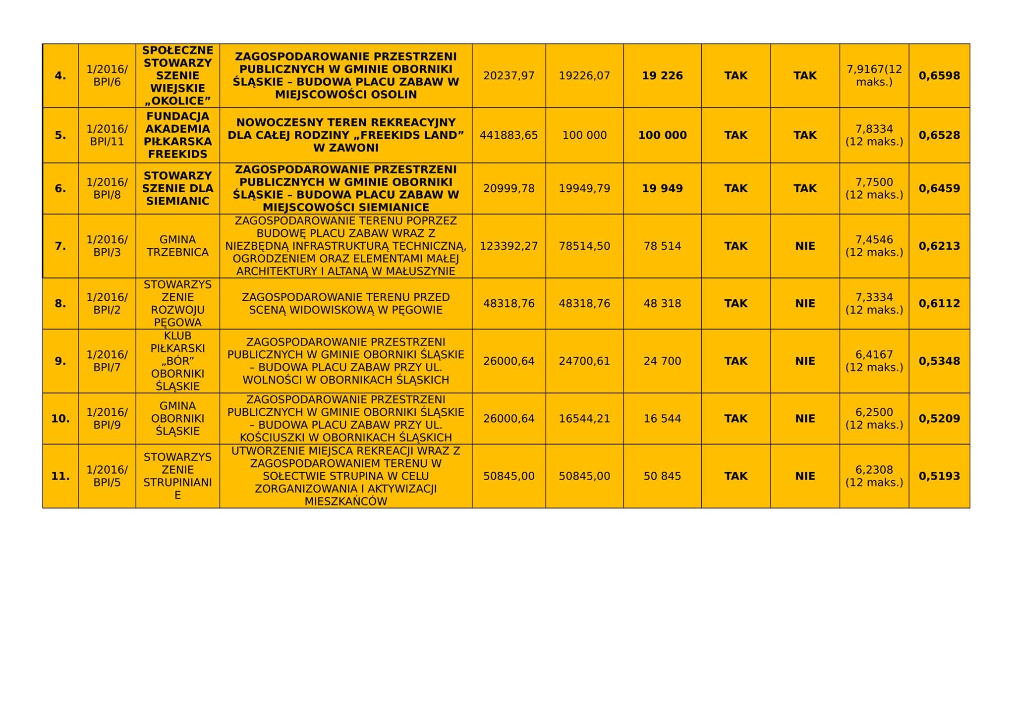 Planowany termin realizacji projektów II połowa 2017 roku.