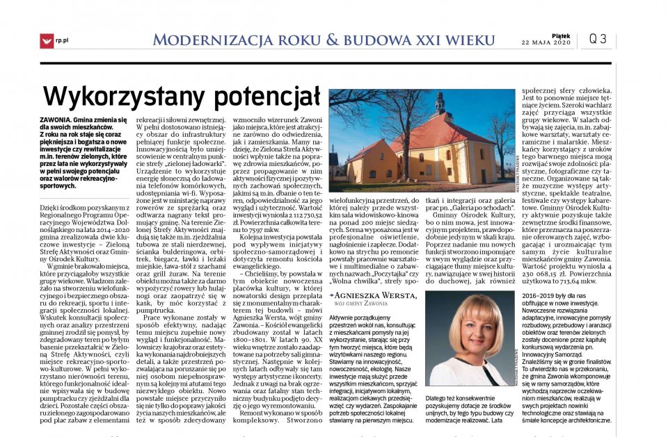 Gmina Zawonia finalistą w konkursie pn. Modernizacja Roku & Budowa XXI w.