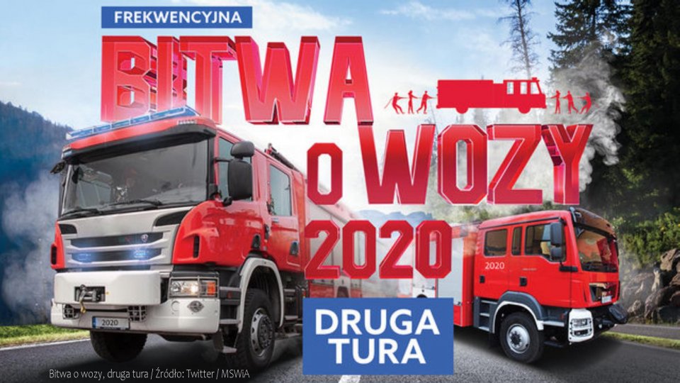 Pieniądze na nowy wóz strażacki ma otrzymać gmina do 20 tys. mieszkańców z największą frekwencją, w każdym z byłych 49 województw, wg stanu granic województw na dzień 31.12.1998 r. W frekwencyjnej konkurencji nie biorą udziały gminy, które wygrały „bitwę o wozy” w pierwszej turze wyborów prezydenckich.