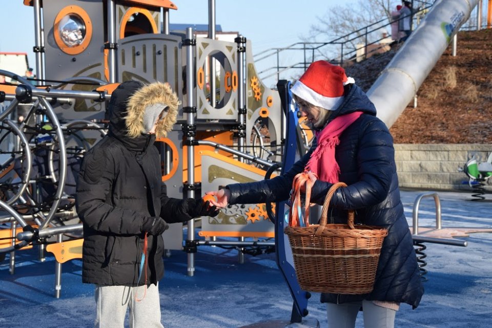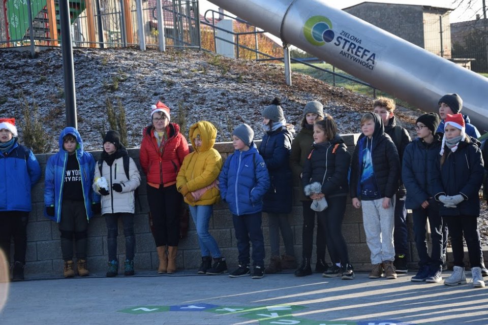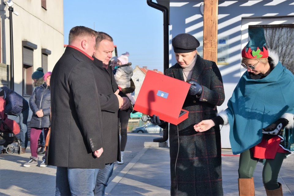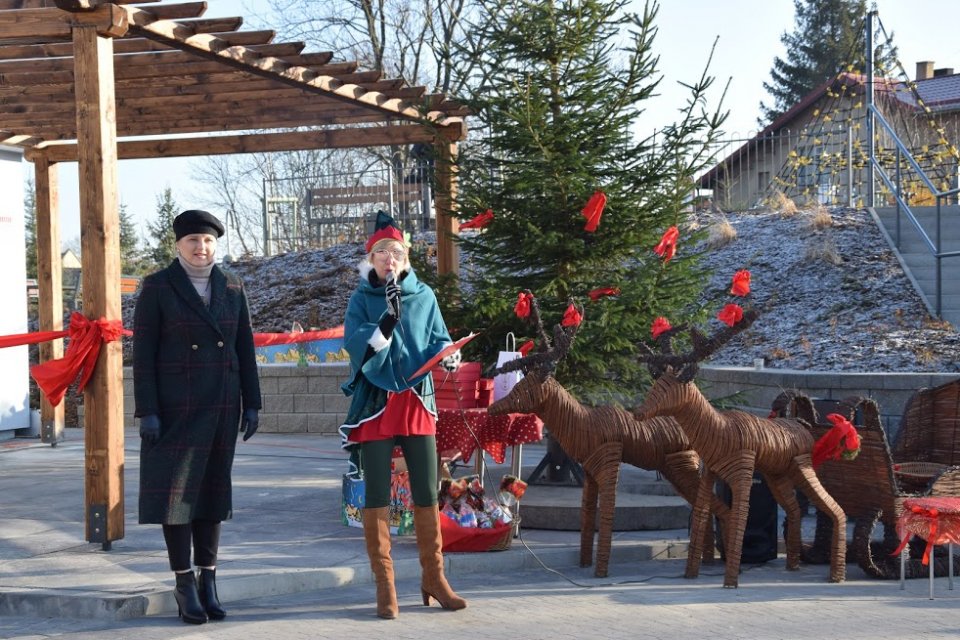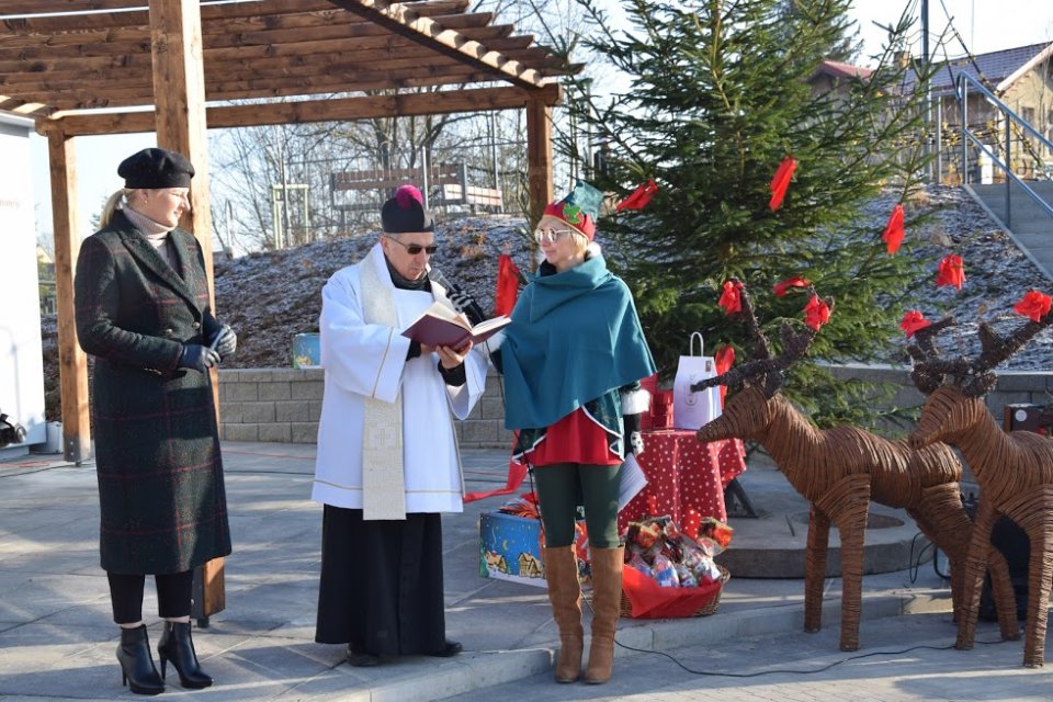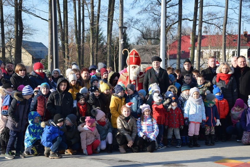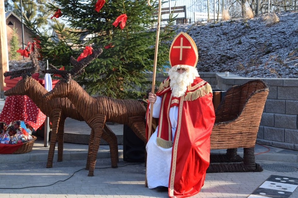 Na otwarciu nie zabrakło także Św. Mikołaja. Wręczył on Pani Wójt prezent, dziękując w imieniu mieszkańców gminy Zawonia za trud włożony w stworzenie obiektu oraz przywołał wszystkie dzieci do ubierania choinki. Każde dziecko otrzymało od Św. Mikołaja słodki upominek, zasponsorowany przez Wykonawcę robót - firmę FreeKids.