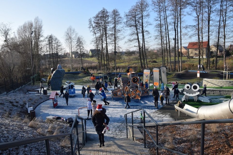 Po zakończeniu części oficjalnej, dzieci opanowały obiekt. Pumptrack zapełnił się rowerami i hulajnogami. Wszystkie elementy obiektu tj. ścianka wspinaczkowa boulderingowa, plac zabaw z ponad 10 metrową rurą do zjeżdżania, siłownia zewnętrzna, zostały sprawdzone i przetestowane przez najlepszych ekspertów od zabawy, czyli dzieci.