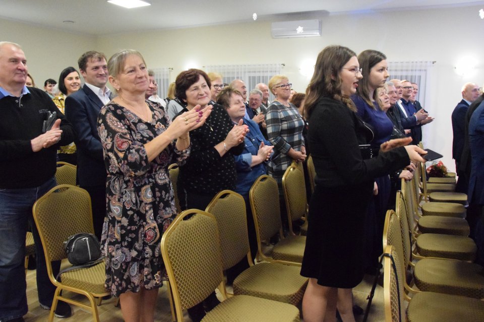 Po wręczeniu statuetek, na ręce pani Wójt złożono kwiaty i upominki, dziękując jednocześnie za zaangażowanie w powstanie tego wspaniałego obiektu. Głos zabrali: Rada Sołecka, pan Artur Ciosek – Wójt Gminy Dobroszyce, pani Anna Mądra-Kras – Naczelnik Wydziału Oświaty, Zdrowia, Kultury i Sportu z Trzebnicy, pan Damian Mrozek – Radny Sejmiku Województwa Dolnośląskiego oraz ks. Jacek Tomaszewski.