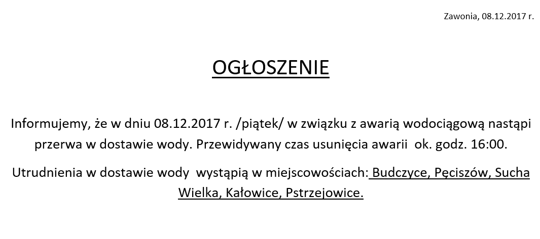 Przerwa w dostawie wody spowodowana awarią wodciągu