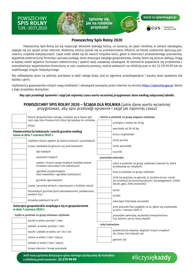 Ściągawka dla rolników dot. powszechnego spisu rolnego - całość plik PDF.