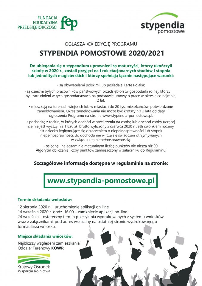 Rozpoczyna się nabór wniosków o Stypendia Pomostowe 2020/2021