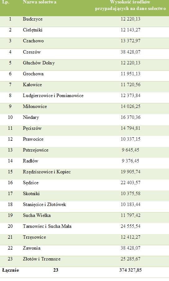 Do wykorzystania jest 374 327,85 zł. Jest to o prawie 73 tys. zł więcej niż w tym roku. Teraz mieszkańcy we współpracy z sołtysami i radami sołeckimi muszą określić na jakie zadania należy przeznaczyć te środki.