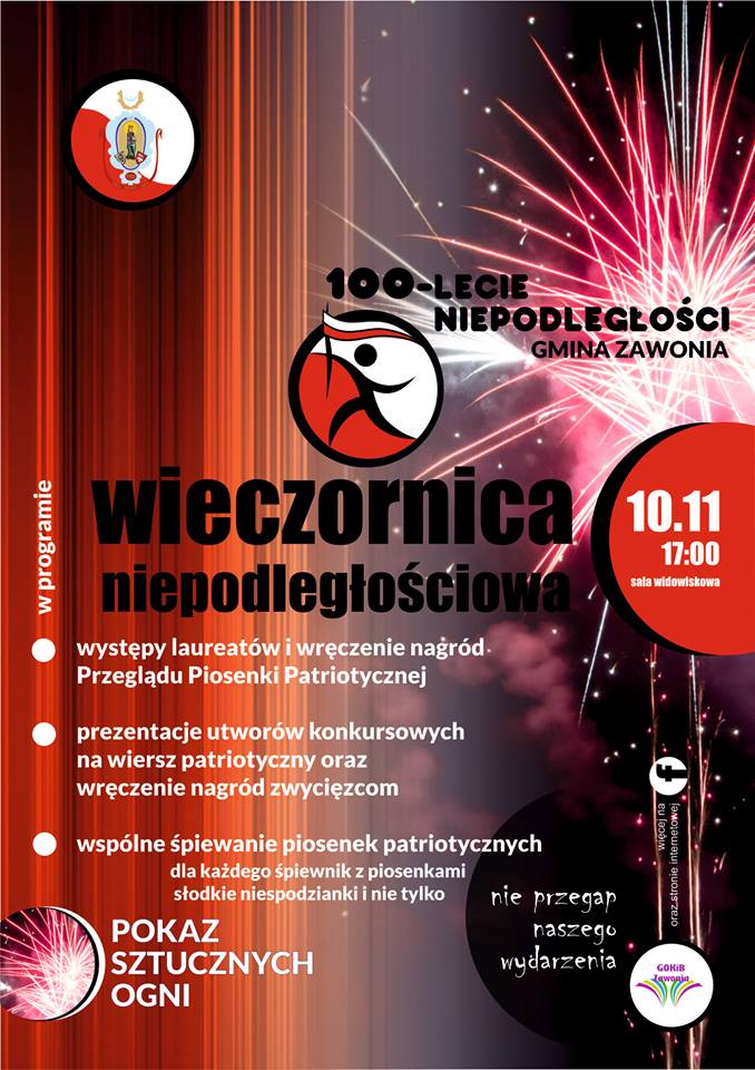 Już 10 listopada Wieczornica Niepodległościowa, podczas której zostaną wręczone nagrody i wyróżnienia uczestnikom konkursu poetyckiego na wiersz patriotyczny w ramach gminnych obchodów 100-LECIA Niepodległości.