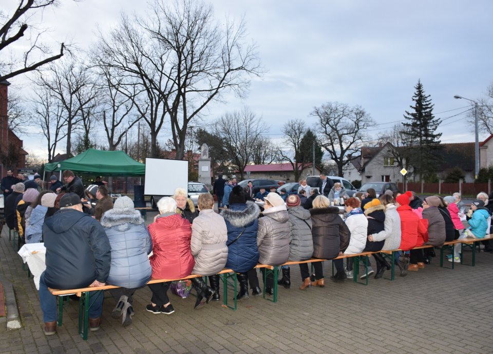 Przed rozpoczęciem biesiadowania, przystrojono choinkę, a ksiądz Jacek Tomaszewski przeczytał fragment z 2 rozdziału Ewangelii Św. Łukasza dot. narodzin Jezusa Chrystusa. Ksiądz zwrócił się także do mieszkańców, by pamiętali o tym, że jest to wyjątkowy czas, czas refleksji nad życiem, nad relacjami z innymi ludźmi. Zaznaczył także, by pamiętać o drugim człowieku, nie tylko z okazji zbliżających się świąt, ale by robić to nieustannie, wrastając w miłości i poszanowaniu dla bliźniego.