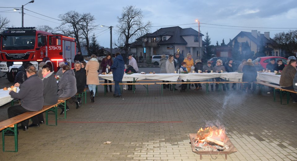 Po tych słowach, rozdane zostały opłatki, tak by wszyscy uczestnicy, mogli złożyć sobie życzenia. W pełnej przyjaźni atmosferze, mieszkańcy zasiedli do wspólnego stołu. Pani Sołtys Beata Borowiak wraz z Radą Sołecką, poczęstowała przybyłych mieszkańców własnoręcznie przygotowanym barszczem z uszkami oraz rybą. Następnie podziękowano Pani Sołtys za zaangażowanie w realizację różnych inicjatyw na rzecz mieszkańców Czeszowa.