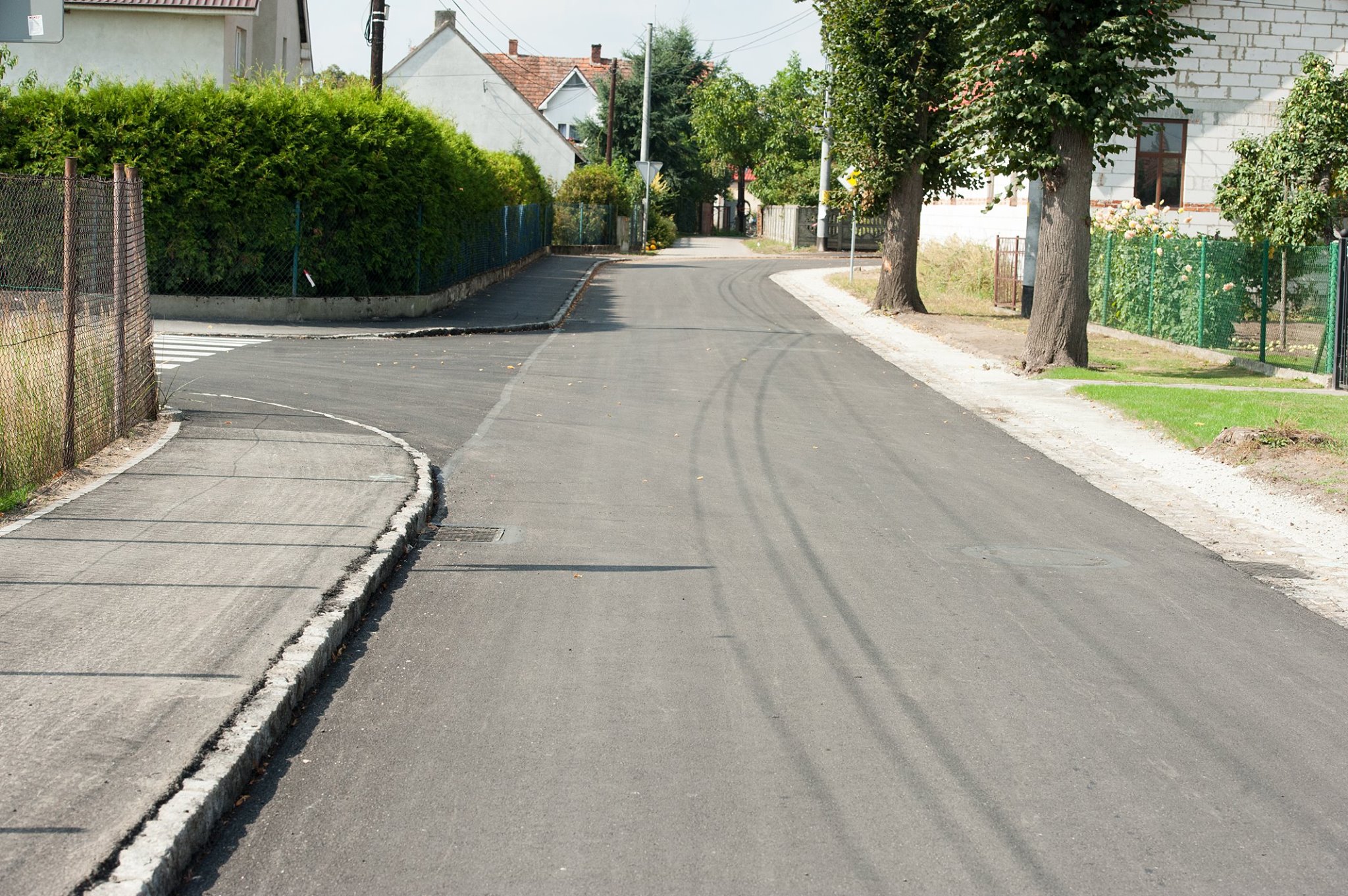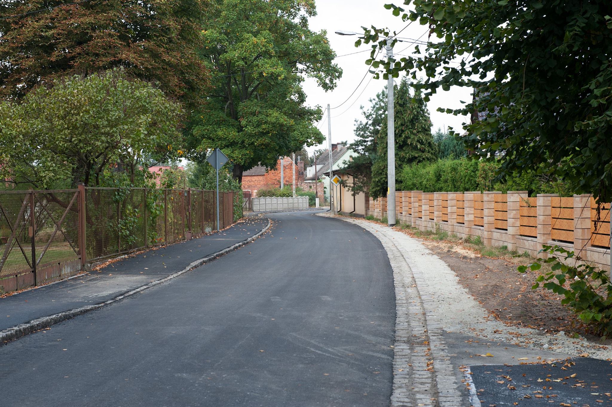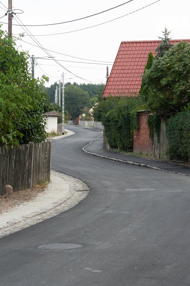 W ubiegłym roku w wyniku złożonego wniosku w konkursie Dolnośląskiego Urzędu Wojewódzkiego otrzymaliśmy dofinansowanie na te inwestycje. W wyniku przetargu nieograniczonego podzielonego na dwa zadania zostali wyłonieni wykonawcy, którzy już zakończyli swoje prace.Inwestycja ta to prawie kilometr nowej nawierzchni asfaltowej na drodze i chodniku. Pozostawiono granitowe krawężniki pomiędzy drogą, a chodnikiem dla zachowania tradycyjnego charakteru. Podczas budowy kanalizacji deszczowej wykorzystano również kostkę granitową, nawiązującą do krawężników, tworzącą tzw. rolkę w której umieszczone są kratki ściekowe, zamiast betonowych korytek. Rolka ta jest również poszerzeniem części asfaltowej w celu łatwiejszego mijania się samochodów.