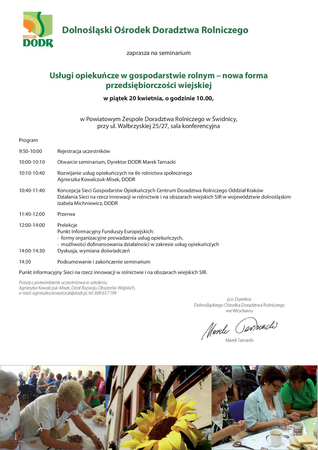 Seminarium Usługi opiekuńcze w gospodarstwie rolnym – nowa forma przedsiębiorczości wiejskiej