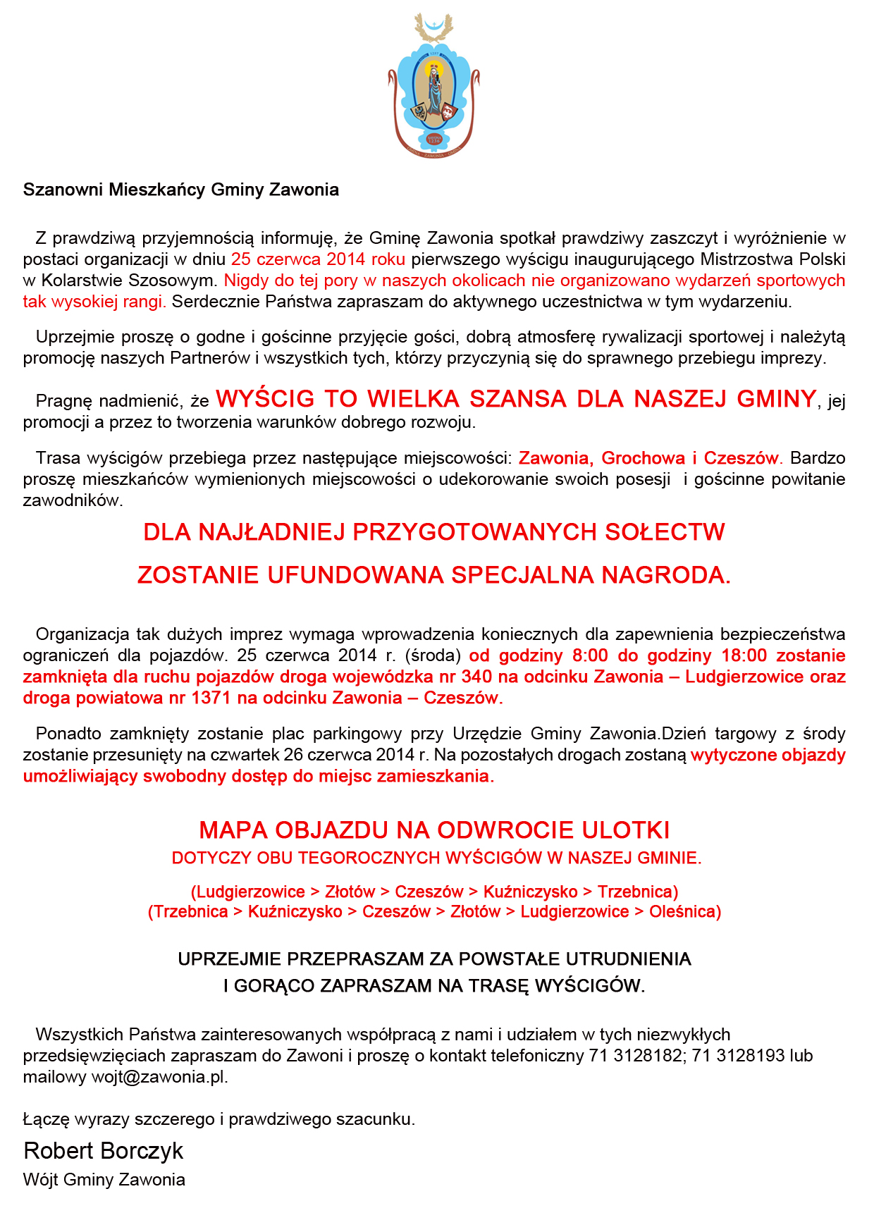Informacja Wójta Gminy Zawonia: