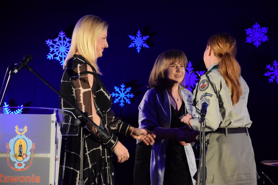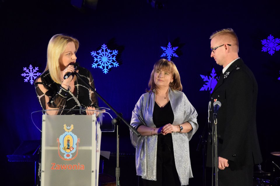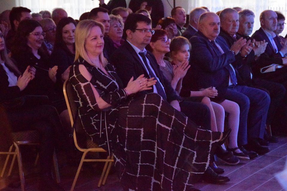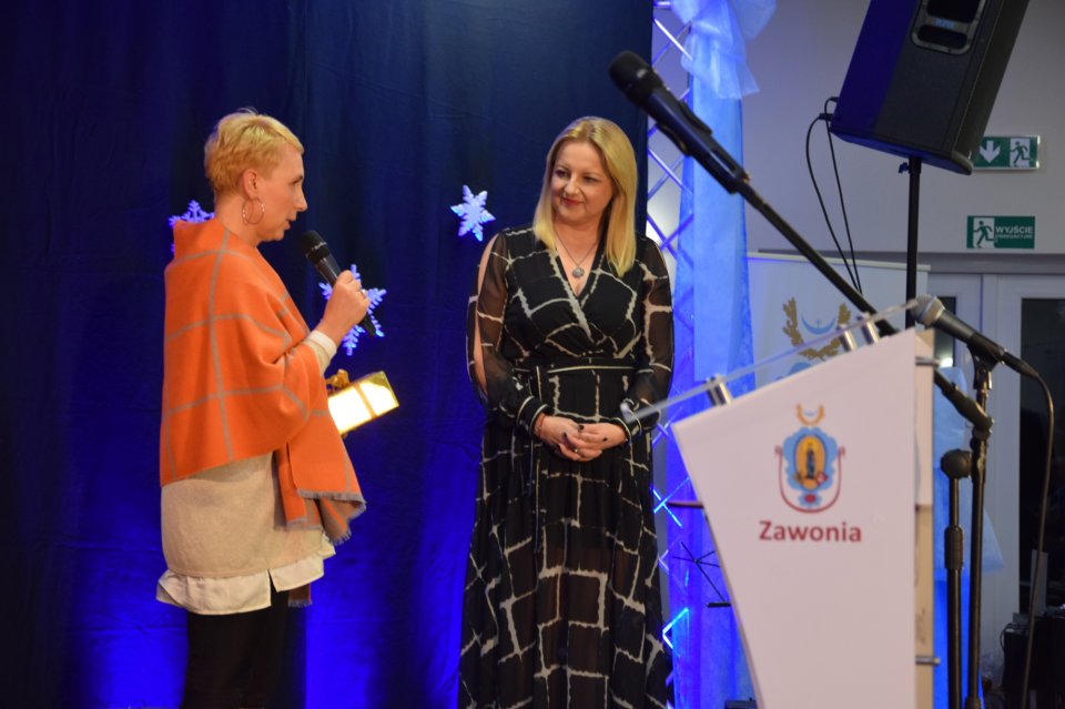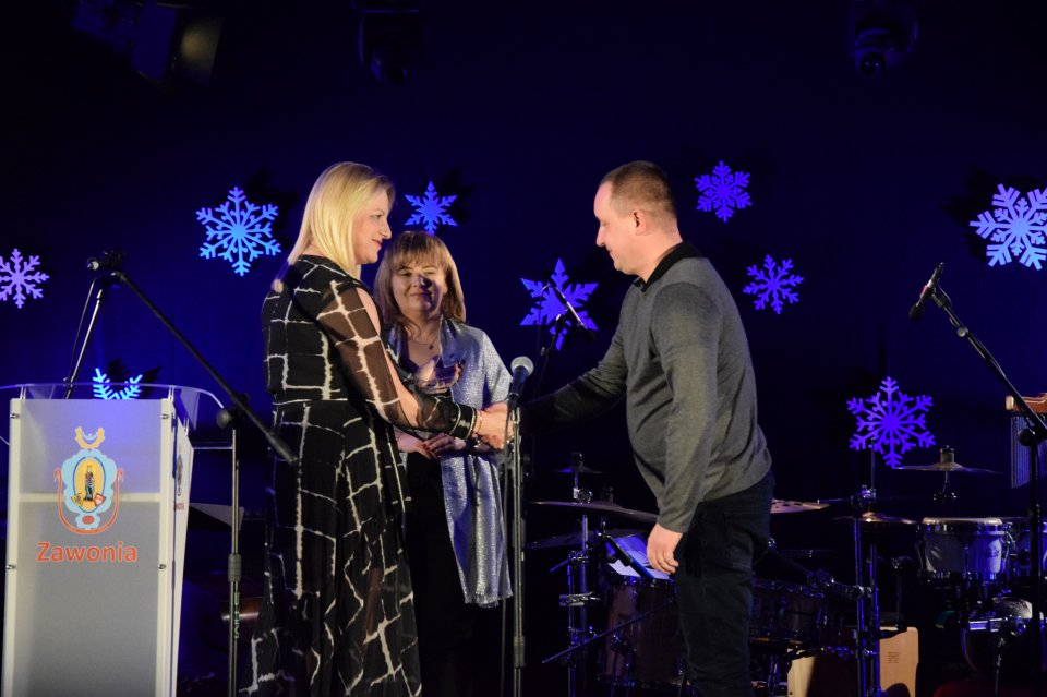 Następnie głos zabrała Wójt Gminy Zawonia Agnieszka Wersta. Pani Wójt podziękowała za obecność zaproszonym gościom, czeszowianom oraz przyjaciołom Czeszowa. Po oficjalnej przemowie, w której pani Wójt nawiązała do tego, iż pierwsza dokumentacja CIL-u była zaprezentowana mieszkańcom już w 2015 roku oraz mieszkańcy brali czynny udział w powstawaniu tego pięknego obiektu, przyszedł czas na szczególne podziękowania. W ramach podziękowań za trud włożony w stworzenie Centrum Inicjatyw Lokalnych statuetki odebrali: główny wykonawca robót pan Władysław Skiba, projektant pan Tomasz Musielak, pani Beata Borowiak – Sołtys wsi Czeszów, pan Piotr Woźniak – Przewodniczący Rady Sołeckiej oraz cała Rada Sołecka. Następnie w ramach podziękowań za wsparcie inicjatyw lokalnych, jakie mają miejsce w Czeszowie zostały wręczone przez panią Wójt i panią Sołtys statuetki dla: panów Tadeusza i Mateusza Muchy. Statuetkę otrzymali również: Pani Elżbieta Michta wieloletnia, była Dyrektor GOK, pan Jacek Tarczyński z firmy Tarczyński S.A. i pan Aleksander Kowalski oraz dla Hotelu „Niezły Młyn” statuetkę odebrał pan Tomasz Wojewoda. Czeszów charakteryzuje bardzo aktywnie udzielająca się społeczność, ponieważ liczni mieszkańcy należą do kół, stowarzyszeń i grup, które angażują się w działalność społeczną na rzecz tej wyjątkowej miejscowości. I właśnie za tę działalność pani Wójt i pani Sołtys podziękowały, poprzez wręczenie pamiątkowych statuetek: Szkole Podstawowej im. ks. W. Bochenka, ks. Jackowi Tomaszewskiemu, Radzie Parafialnej, Ochotniczej Straży Pożarnej, Stowarzyszeniu Blood Brothers, Kołu Emerytów i Rencistów nr 10, Stowarzyszeniu Pro Futuro i 26 Szczepowi Agricola. Na koniec szczególne podziękowania trafiły do pana Romana Żyto za niezwykłą aktywność w tworzeniu Centrum.