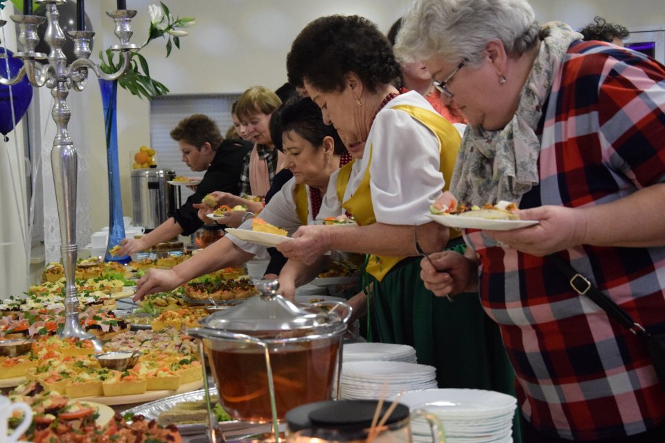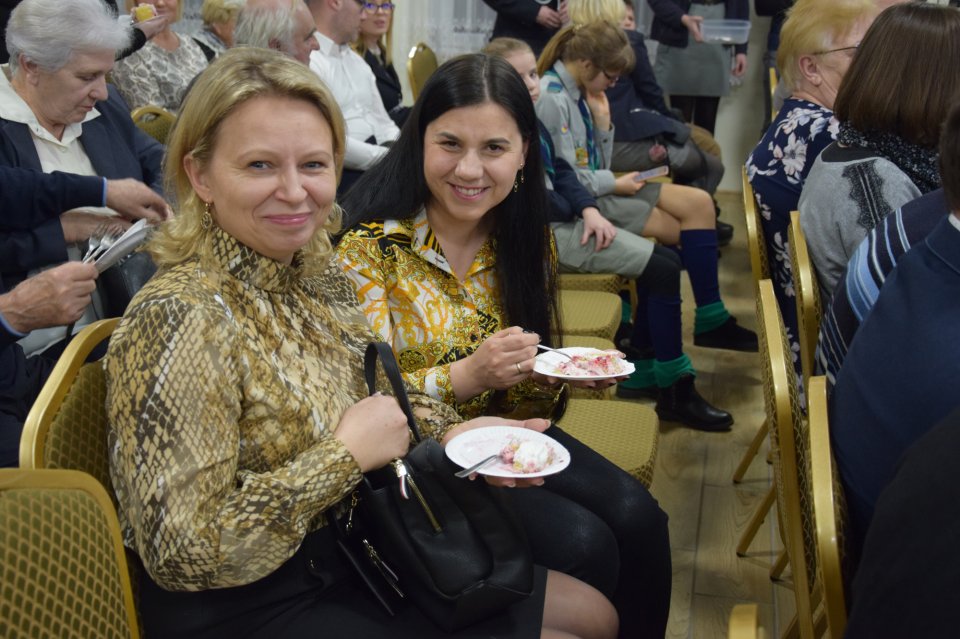 Po zakończeniu części koncertowej, zaproszono wszystkich uczestników na poczęstunek. Oczom zgromadzonych ukazały się różnobarwne, wykwintne przekąski, przepyszne ciasta oraz ciepłe napoje. Niezwykła aura tego miejsca, wpływała pozytywnie na wszystkich tam zgromadzonych, którzy podczas delektowania się zaserwowanymi specjałami, prowadzili luźne rozmowy dotyczące minionych wydarzeń tego szczególnego dnia.