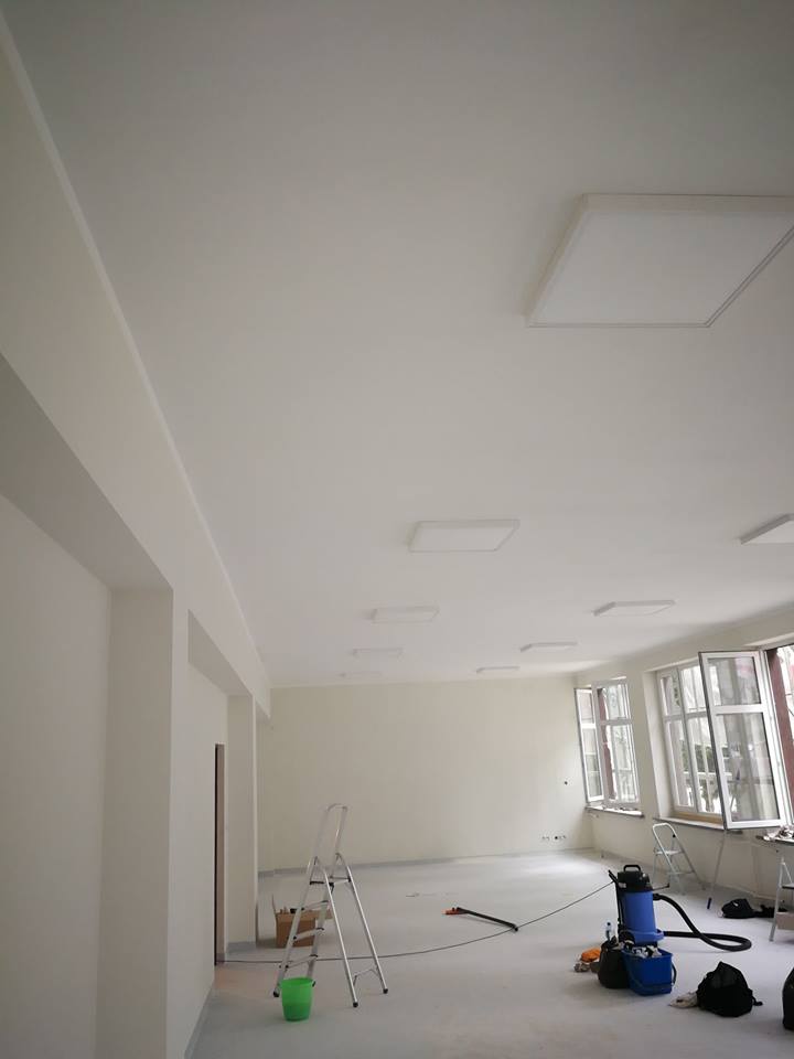 W poniedziałek rozpoczęcie roku szkolnego 2018/2019 jak obiecałam dzieci rozpoczną naukę w nowo wyremontowanych salach ma parterze budynku co pozwoli uniknąć drugiej zmiany. Na parterze pozostało sprzątanie sal, które po położeniu nowego stropu są jak nowe. Jasne sale, nowe wykładziny, ledowe oświetlenie które jak w urzędzie będzie o wiele korzystniejsze i przyjazne dzieciom. Czekamy jeszcze na nowe kaloryfery. To była trudna decyzja o zawaleniu starego stropu, ale konieczna z powodu bezpieczeństwa dzieci i korzystna patrząc na nowe sale na parterze.