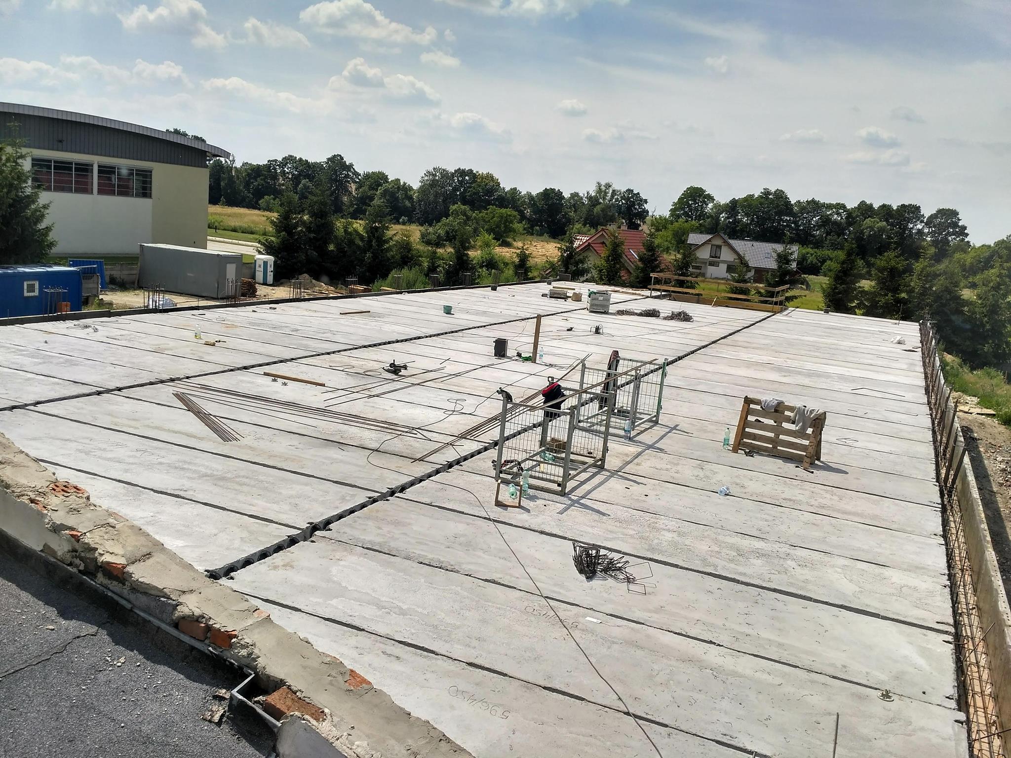 Pokonaliśmy, po położeniu nowego stropu, już wszystkie trudności związane z rozbudową szkoły. Wzmocnienie gruntu pod fundamentami, nowy strop spowodowały przedłużenie o 9 miesięcy zakończenie, ale aby postał przede wszystkim bezpieczny budynek szkolny należało przeprowadzić te wszystkie dodatkowe prace.. Teraz postęp prac jest duży i wszystkie prace zgodnie z podpisaną umową z Wykonawcą mają zakończyć się do końca października.