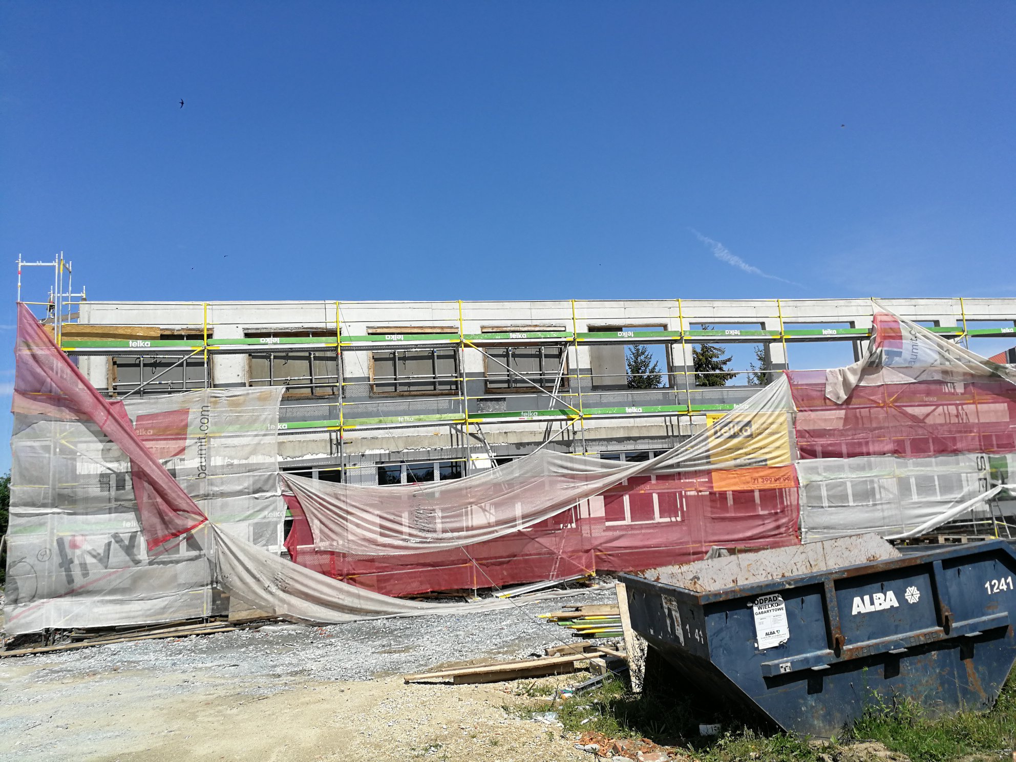 Postęp prac na budowie jest teraz codziennie bardzo duży. Po pokonaniu trudności związanych z koniecznością wymiany stropu z powodu złej jakości betonu, widzimy codziennie zmieniający się budynek szkoły.